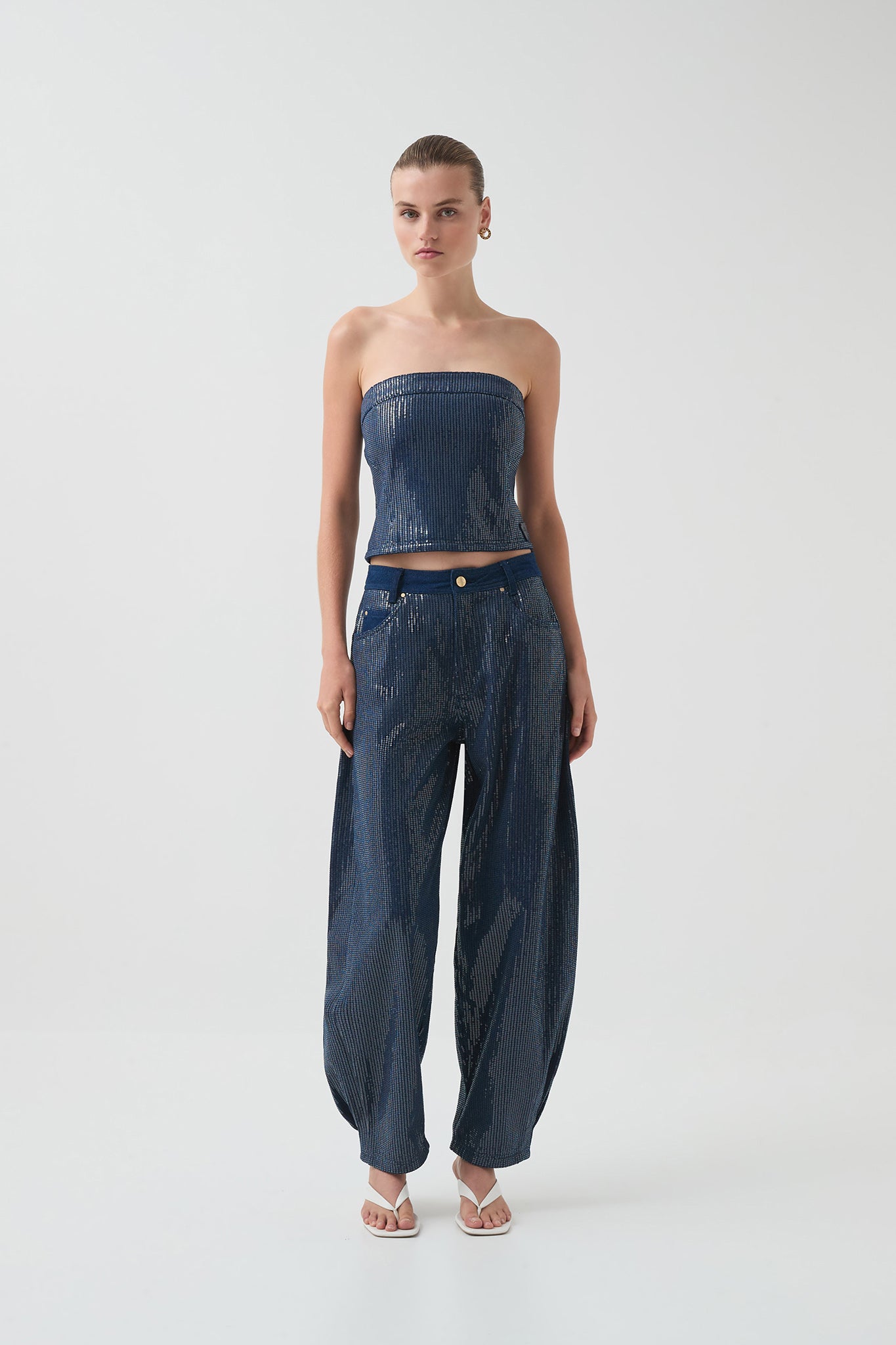 - Sequin detail throughout